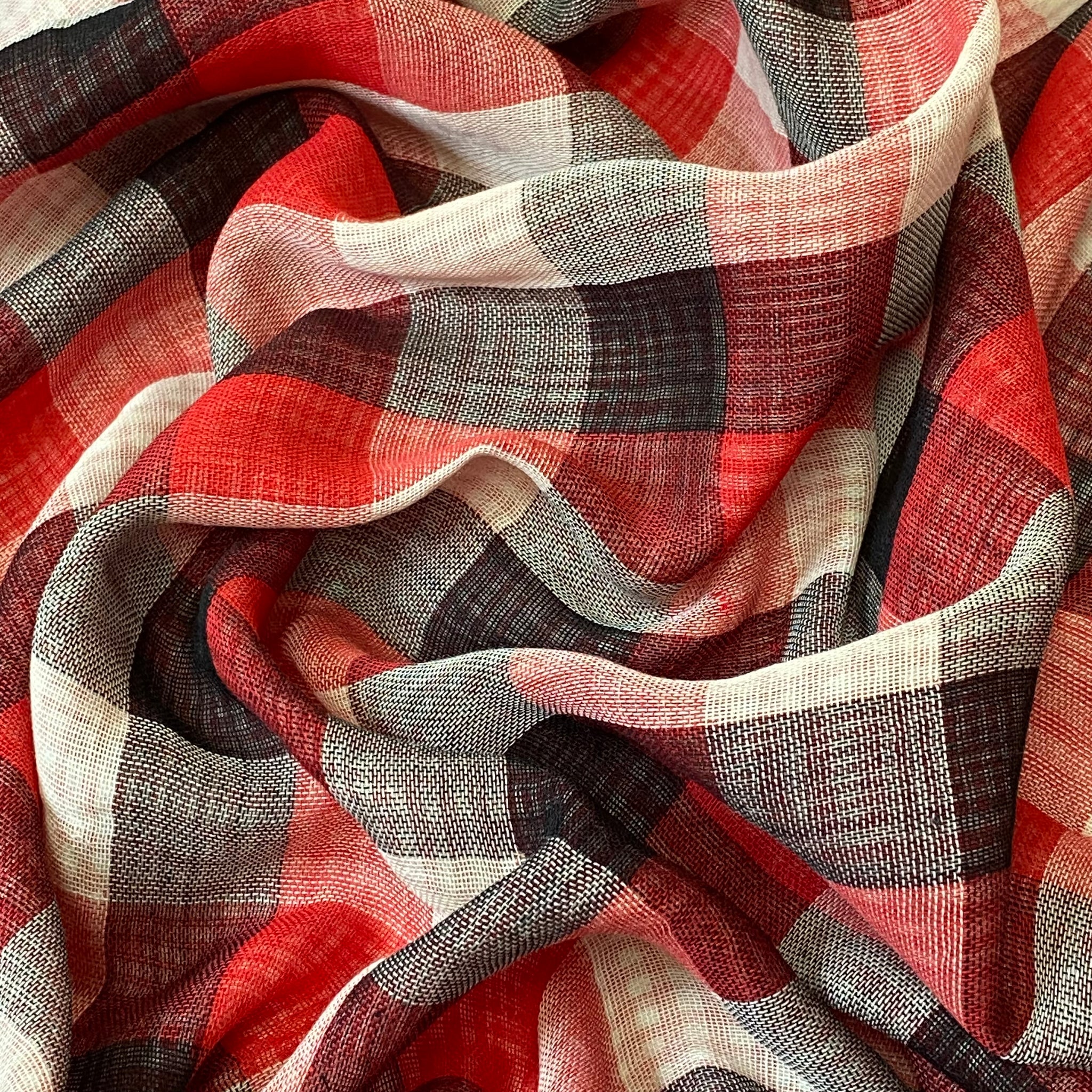 Double sided pattern directly in the weave: Buffalo Plaid on one side, Glen Check Plaid on the reverse side.
