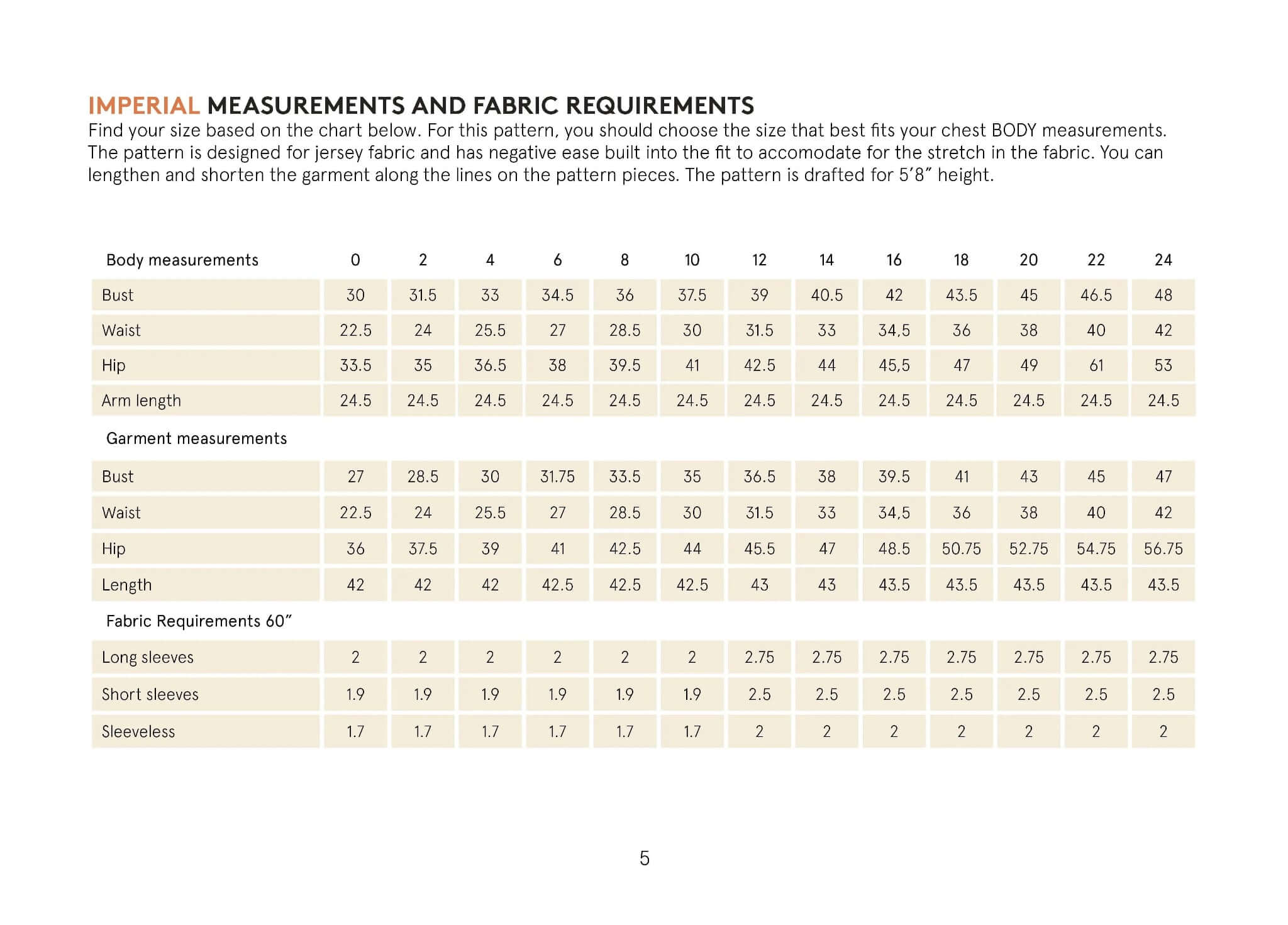 Use jersey fabric with 15-20% stretch. Choose cotton, viscose, wool, ITY poly, or any other fiber with a 2- or 4-way stretch.