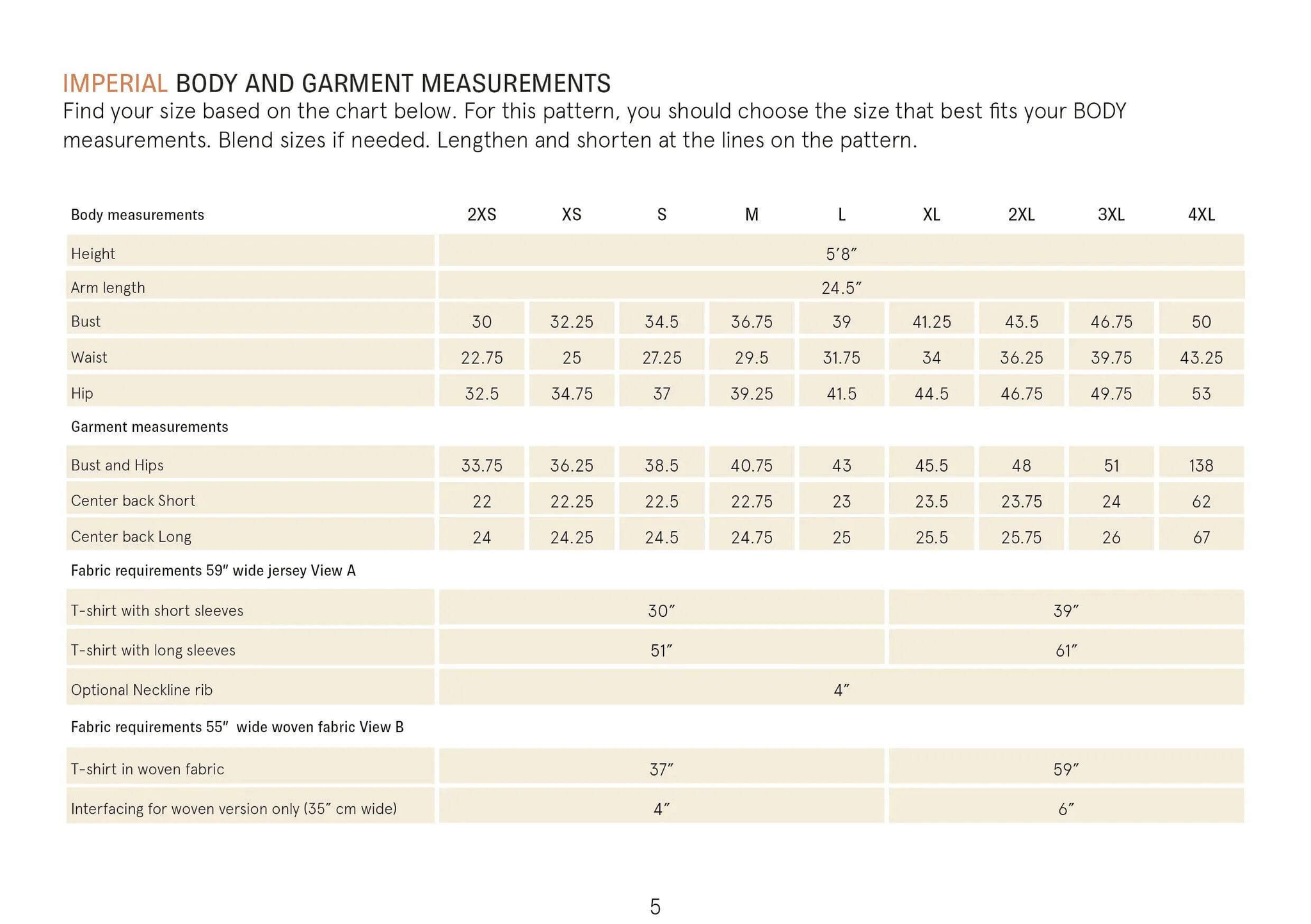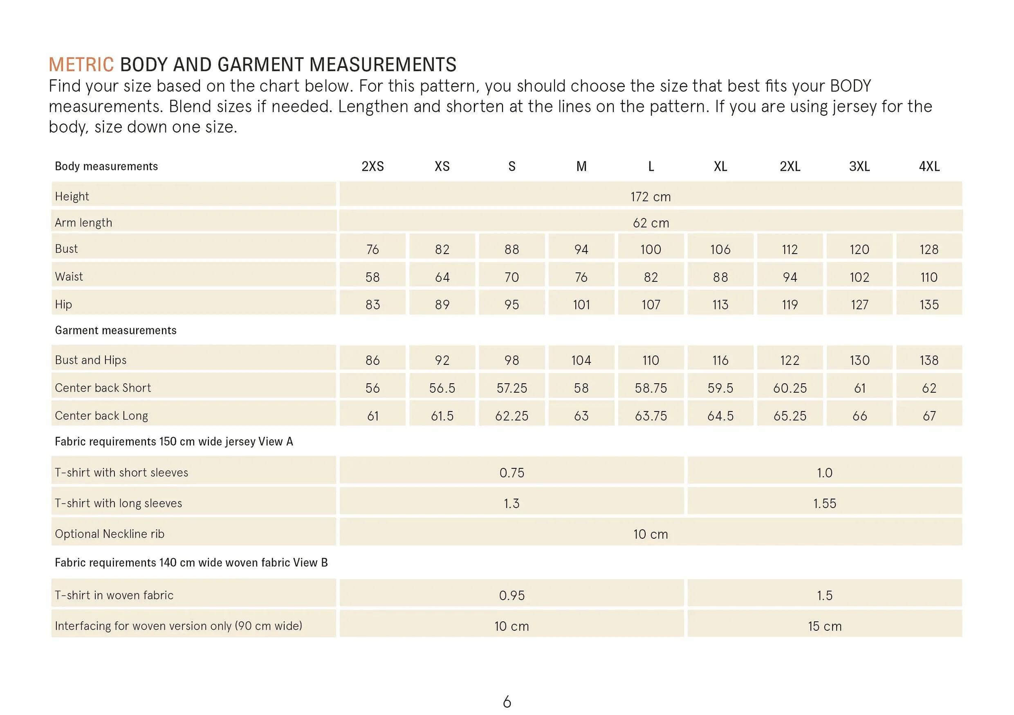 Flip through the images to find fabric requirements and measurements for the Easy T-Shirt pattern.