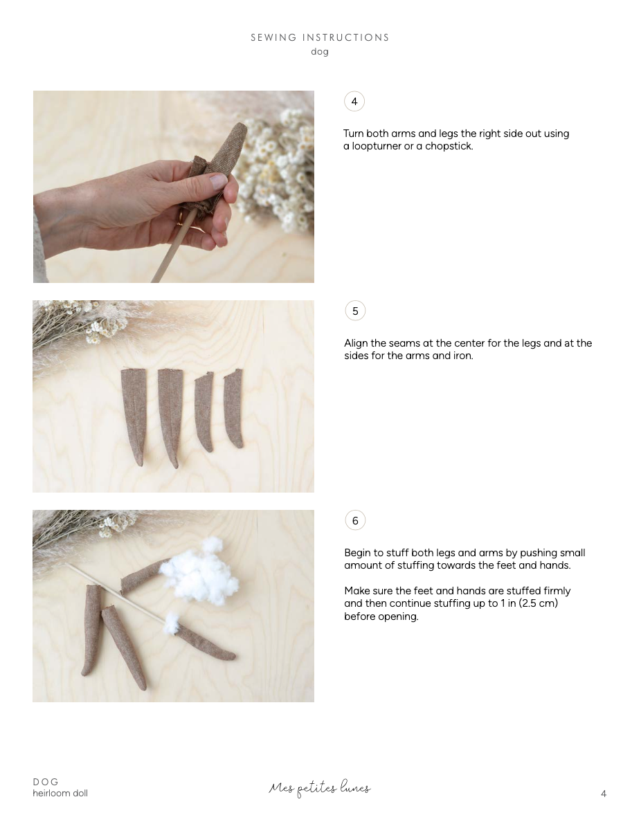 With your purchase, you will also be invited to join our Facebook private group Mes petites lunes patterns – Sewing Collective where I share videos to help you make your doll and where you can learn and get inspired from one another.