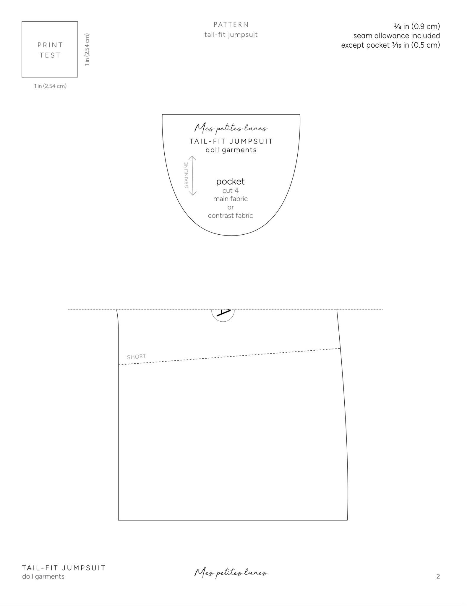 - Tail-fit jumpsuit (long or short sleeves, long or short legs, regular or gathered)