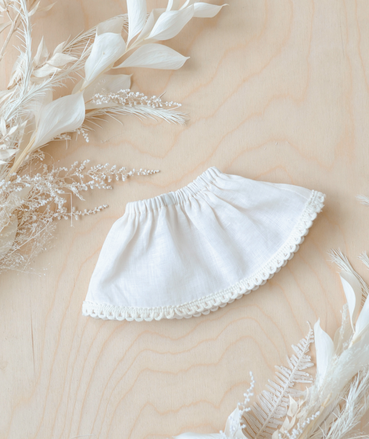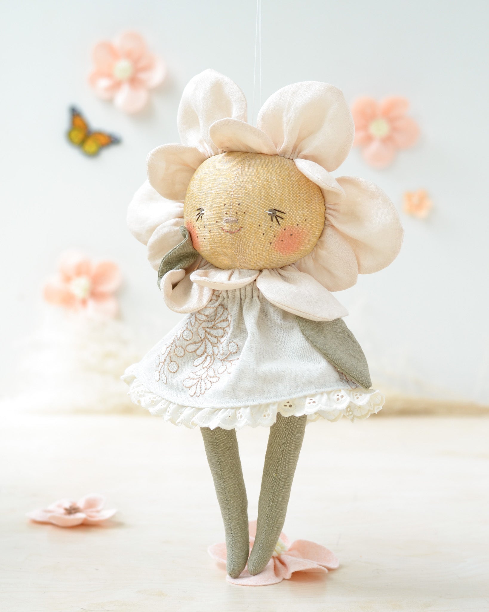 Make your own Mes petites lunes flower doll with this easy step-by-step tutorial and professional sewing pattern. With this bundle, you'll be able to make an adorable 14-inch (35 cm) flower doll dressed up in 2 different outfits : bloomer shorts and a pretty skirt, and a lovely bow.