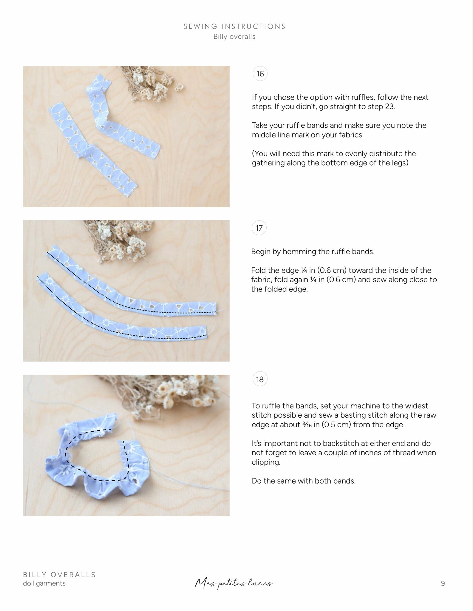 - Billy overalls (short, long and with ruffles)