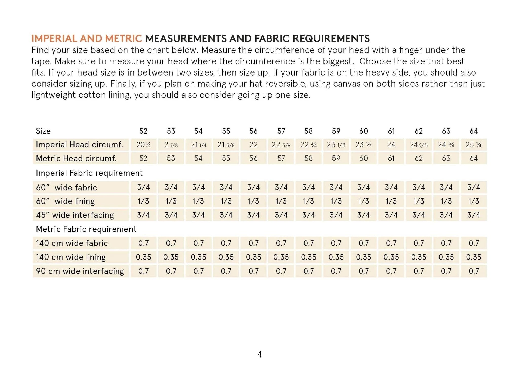 Flip through the images to find fabric requirements and measurements for the Bucket Hat Sewing Pattern.