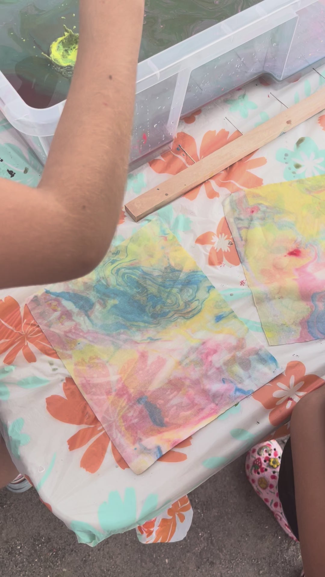 - Campers create their own printed designs using fabric paint and stamps