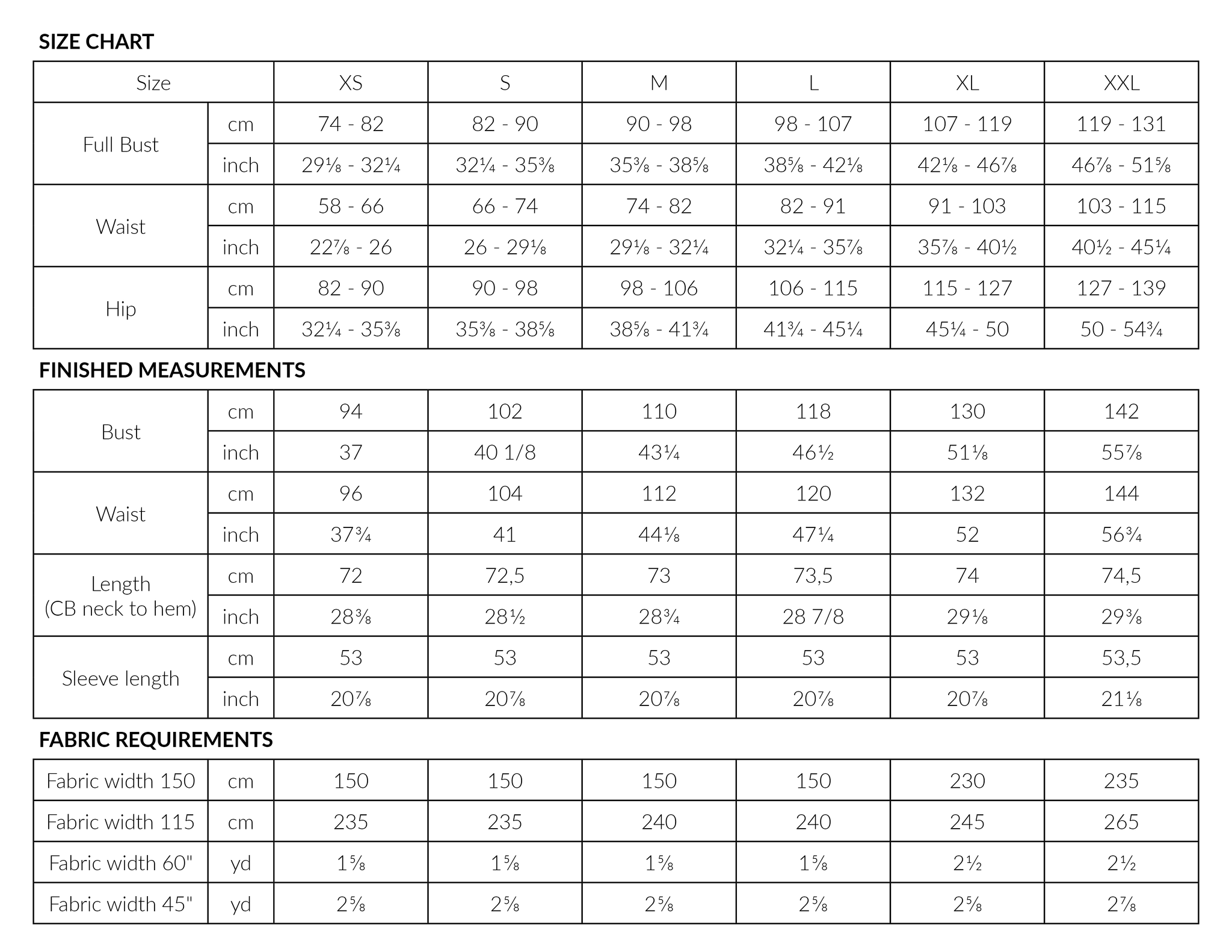 Sizes: XS - XXL