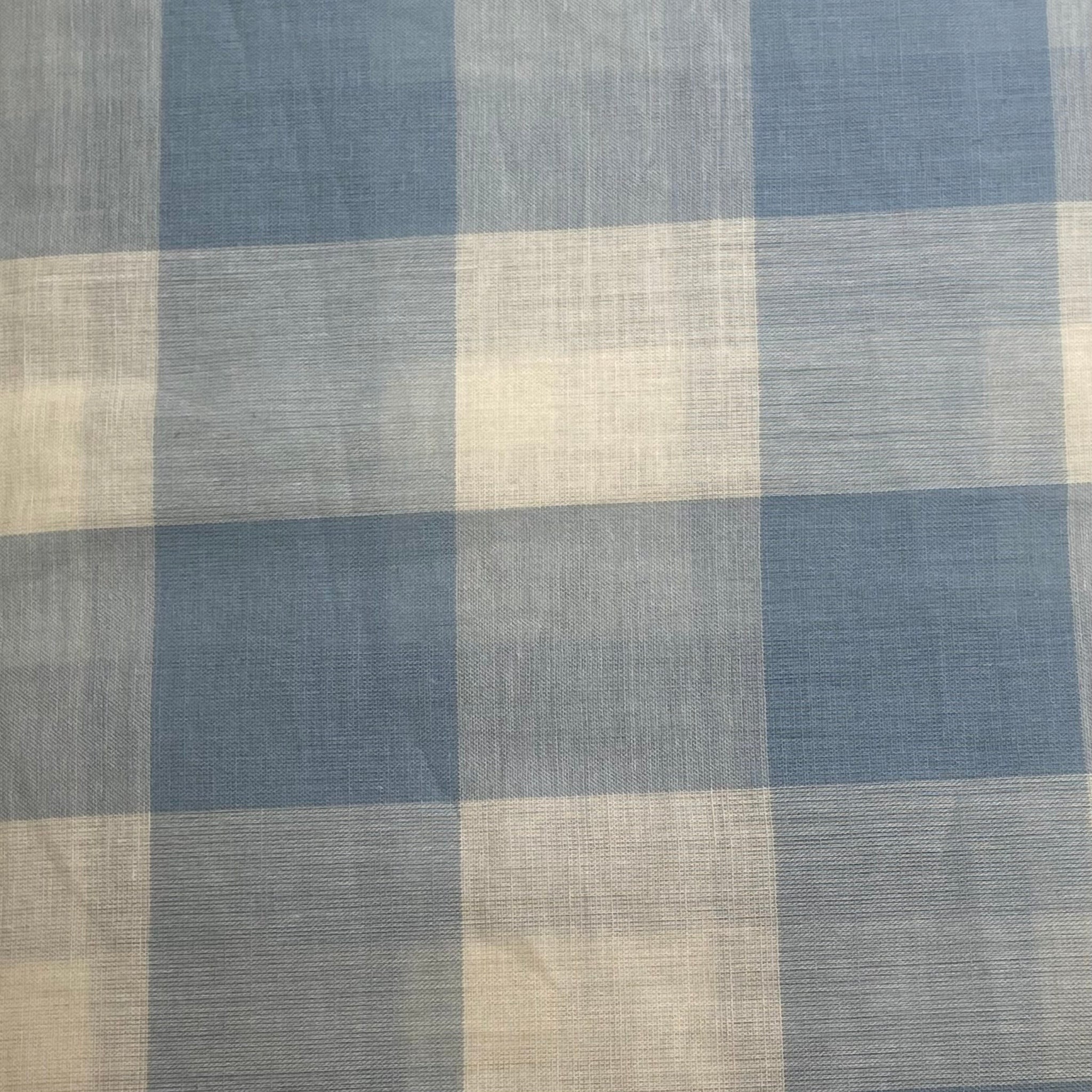 This featherlight cotton voile is a beautifully airy, semi-sheer woven fabric with a silky soft hand feel. Features a pale blue 1 1/4" gingham check.