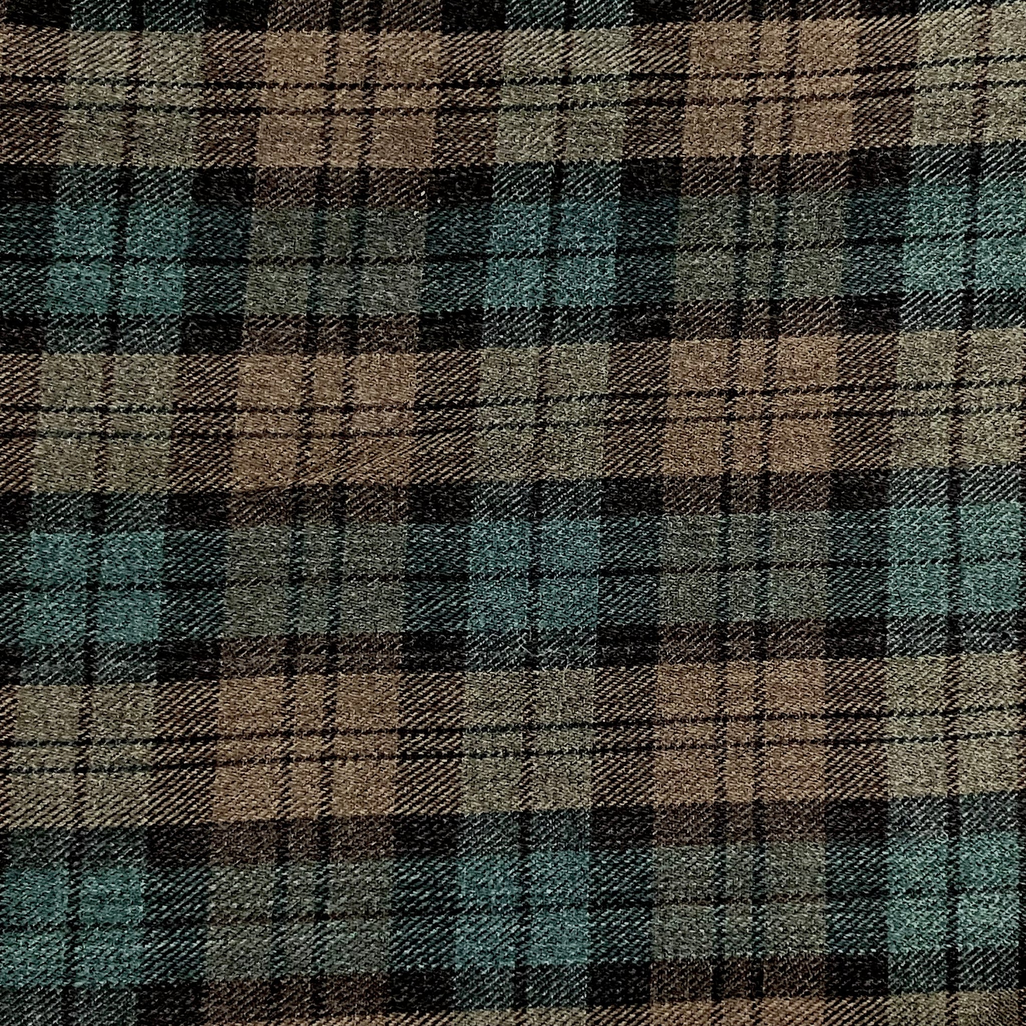 Soft and cozy poly-cotton blend flannel in a classic plaid pattern of black stripes over green and brown squares. This medium weight fabric combines the durability and easy care of polyester with the breathability and comfort of cotton.