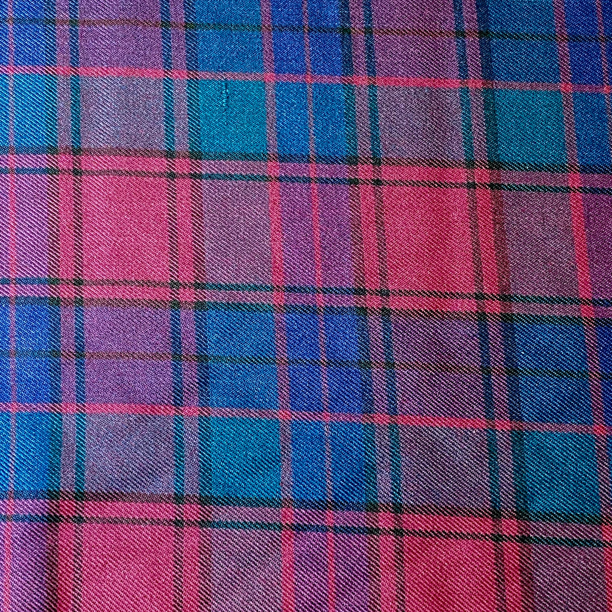 Soft and cozy poly-cotton blend flannel in a classic plaid pattern with wine red and teal coloured squares and criss crossing lines. This medium weight fabric combines the durability and easy care of polyester with the breathability and comfort of cotton.