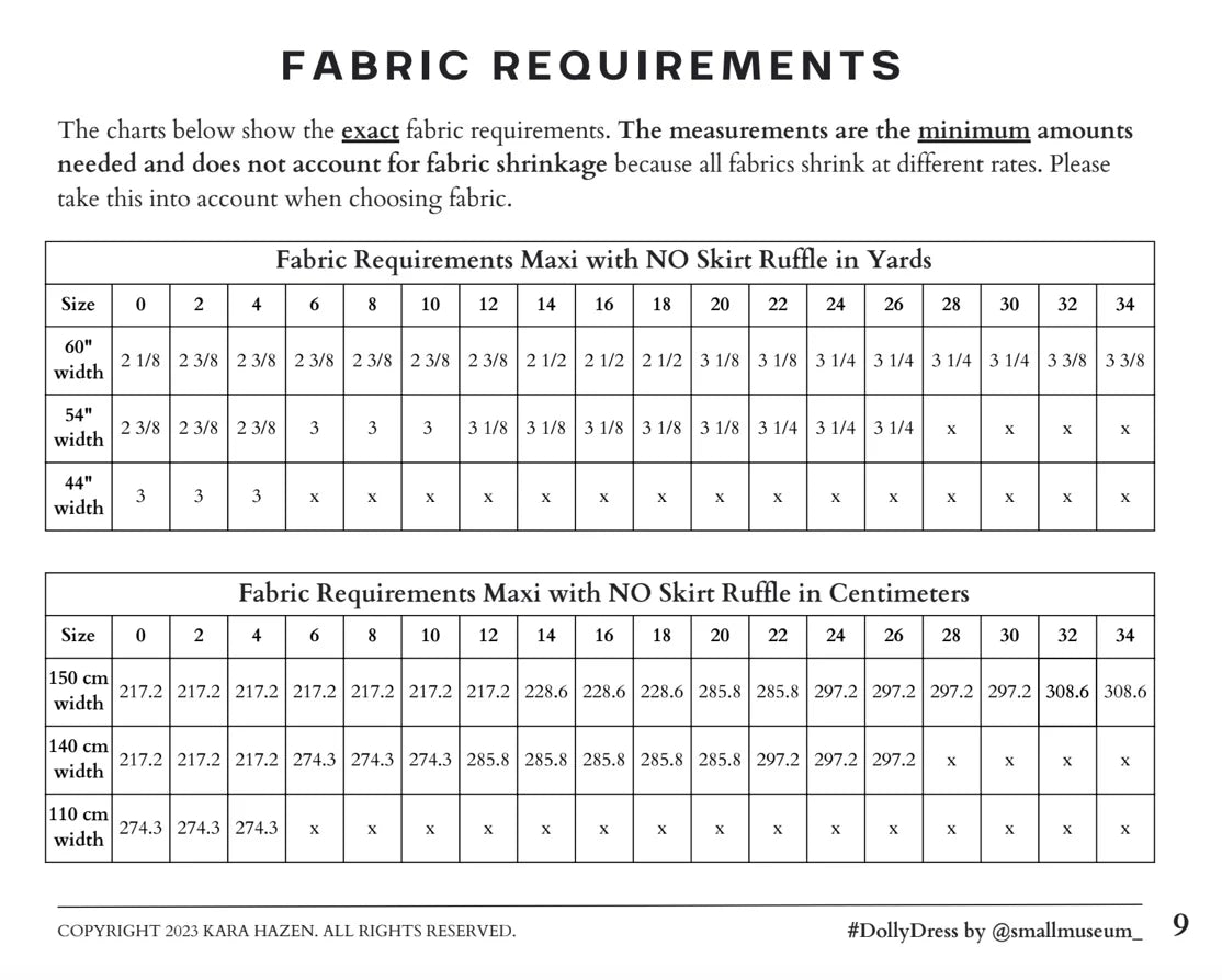 For Sizing and Fabric Requirements Please see photos: we will email supply list 2 weeks before class, but if you have any questions in advance please let us know!