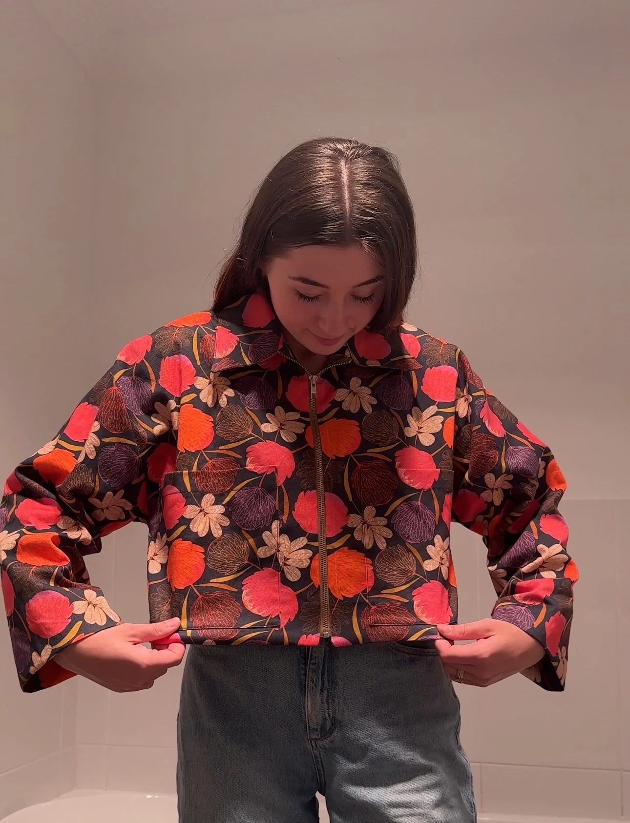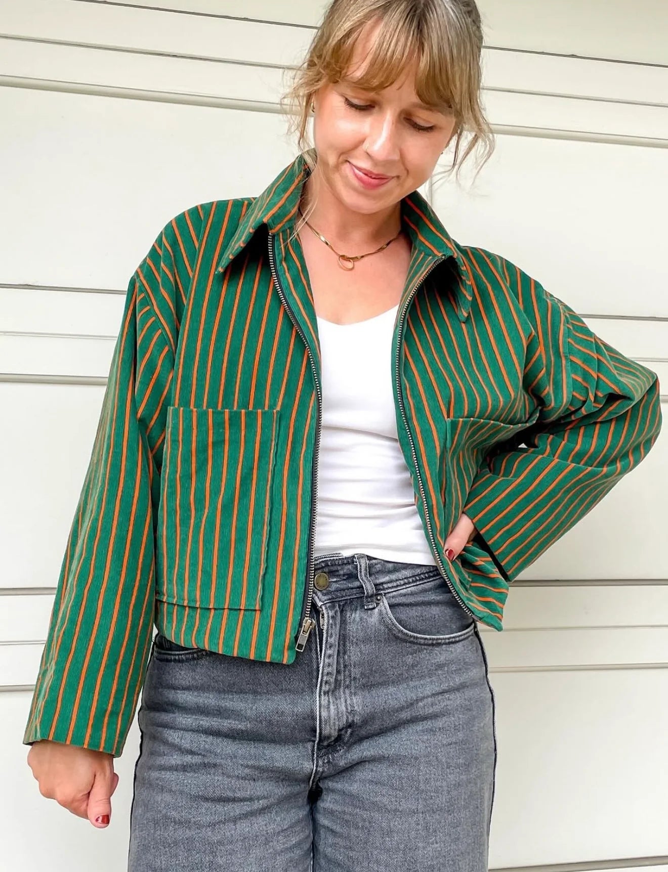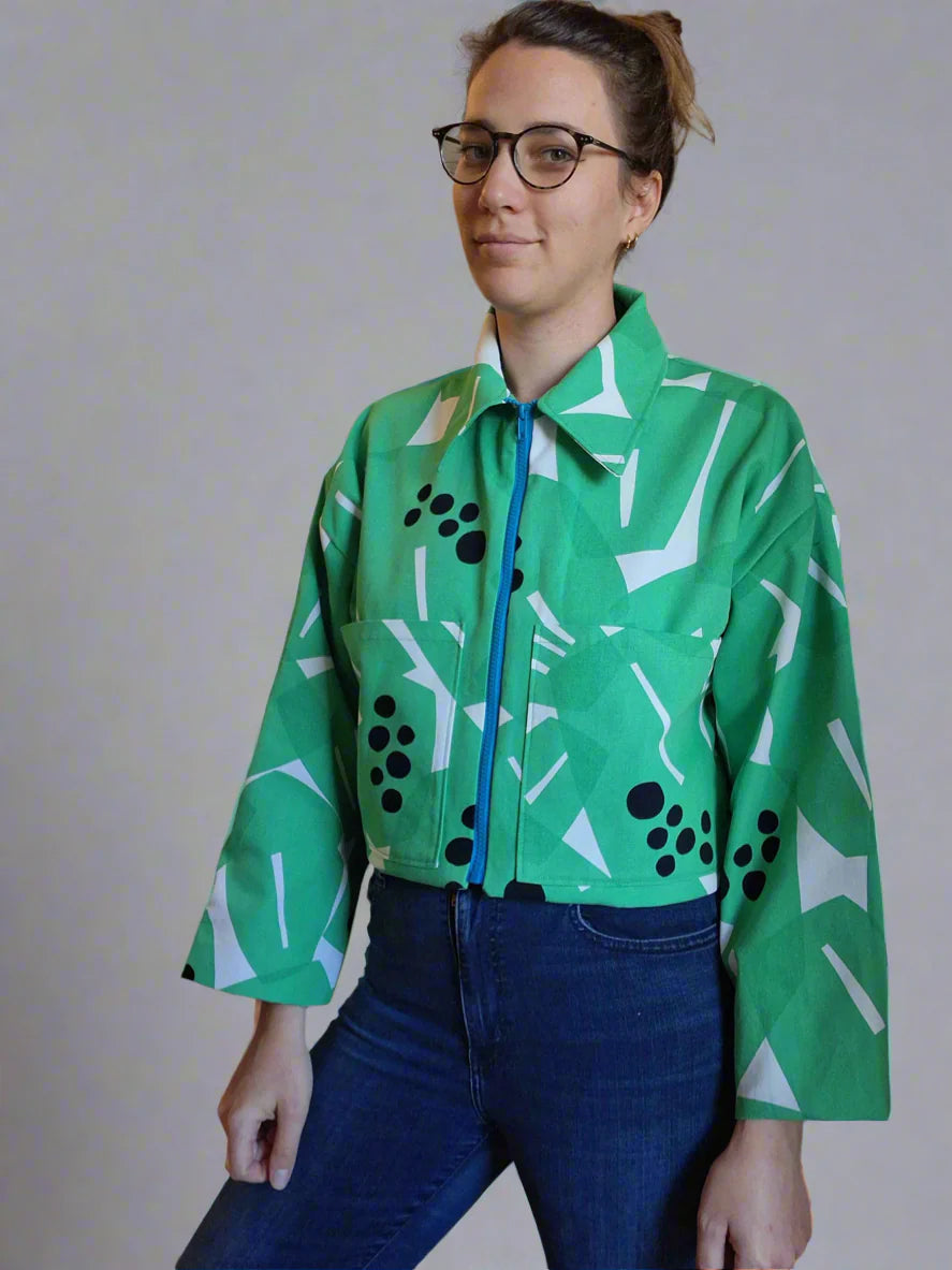 The Frankie Jacket is perfect transitional jacket to take you from summer into fall, or from winter to spring! Fully lined, with patch pockets, cropped with a zipper, it is designed to be very oversized, streetwear- inspired, but it can also be lengthened for a barn jacket feel. There is plenty of ease, so you can be all wrapped up in your new creation. The possibilities are endless.