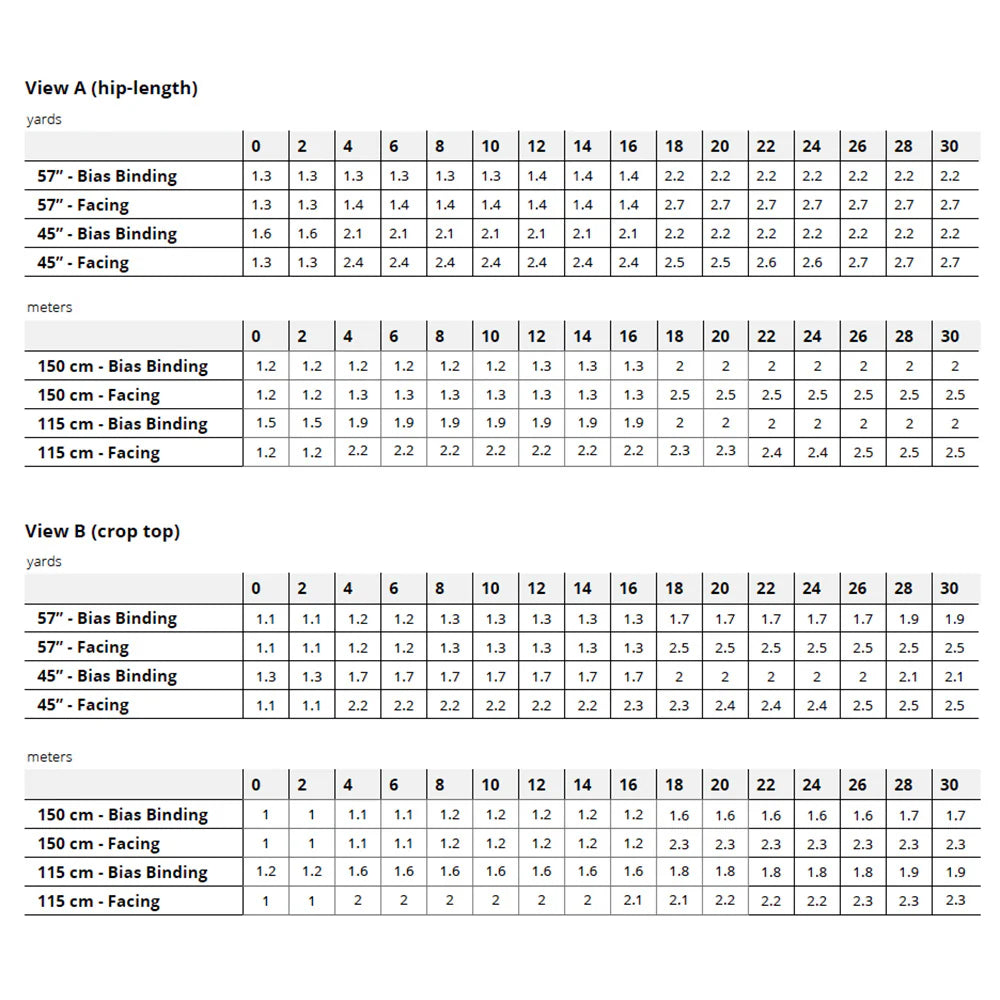 View Size Chart & Fabric Requirements