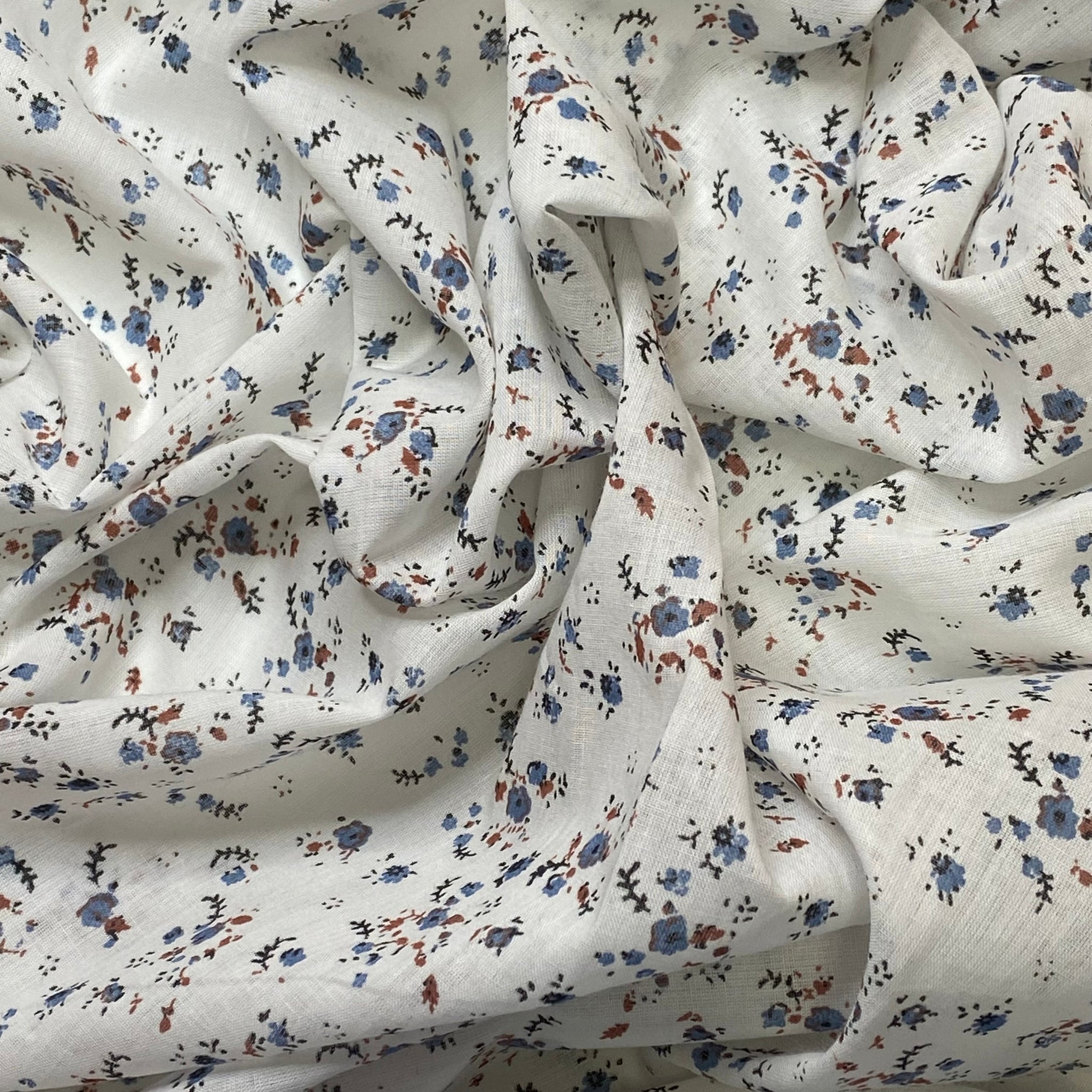 This featherlight cotton voile is a beautifully airy, semi-sheer woven fabric with a silky soft hand feel. Features a tiny vintage-inspired floral scatter on a soft natural off-white ground.