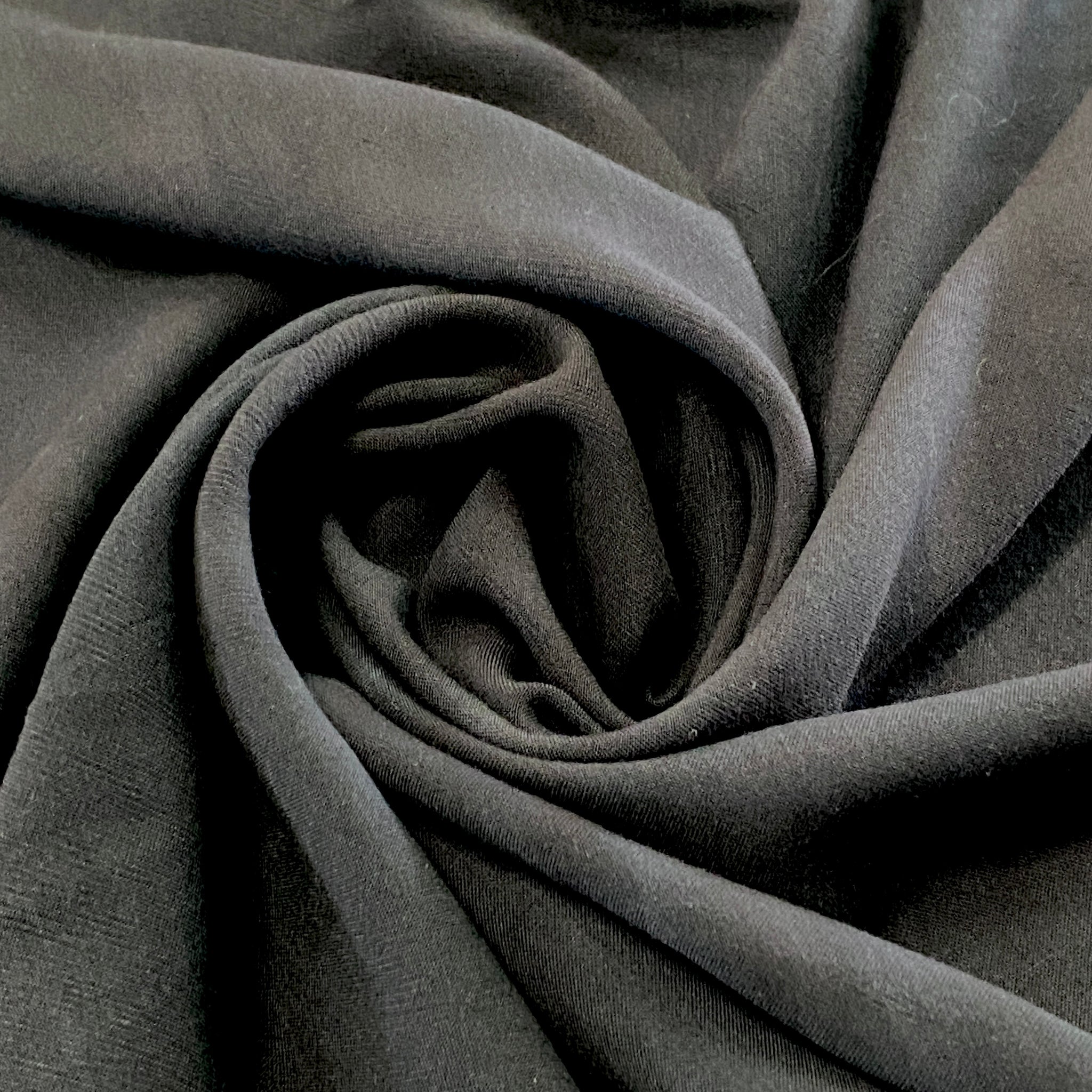 Rayon woven fabric in a charcoal colour with a subtle tonal variation throughout while the fabric maintains a smooth hand, elegant drape and breathable comfort. Ideal for garments that embrace movement and texture.