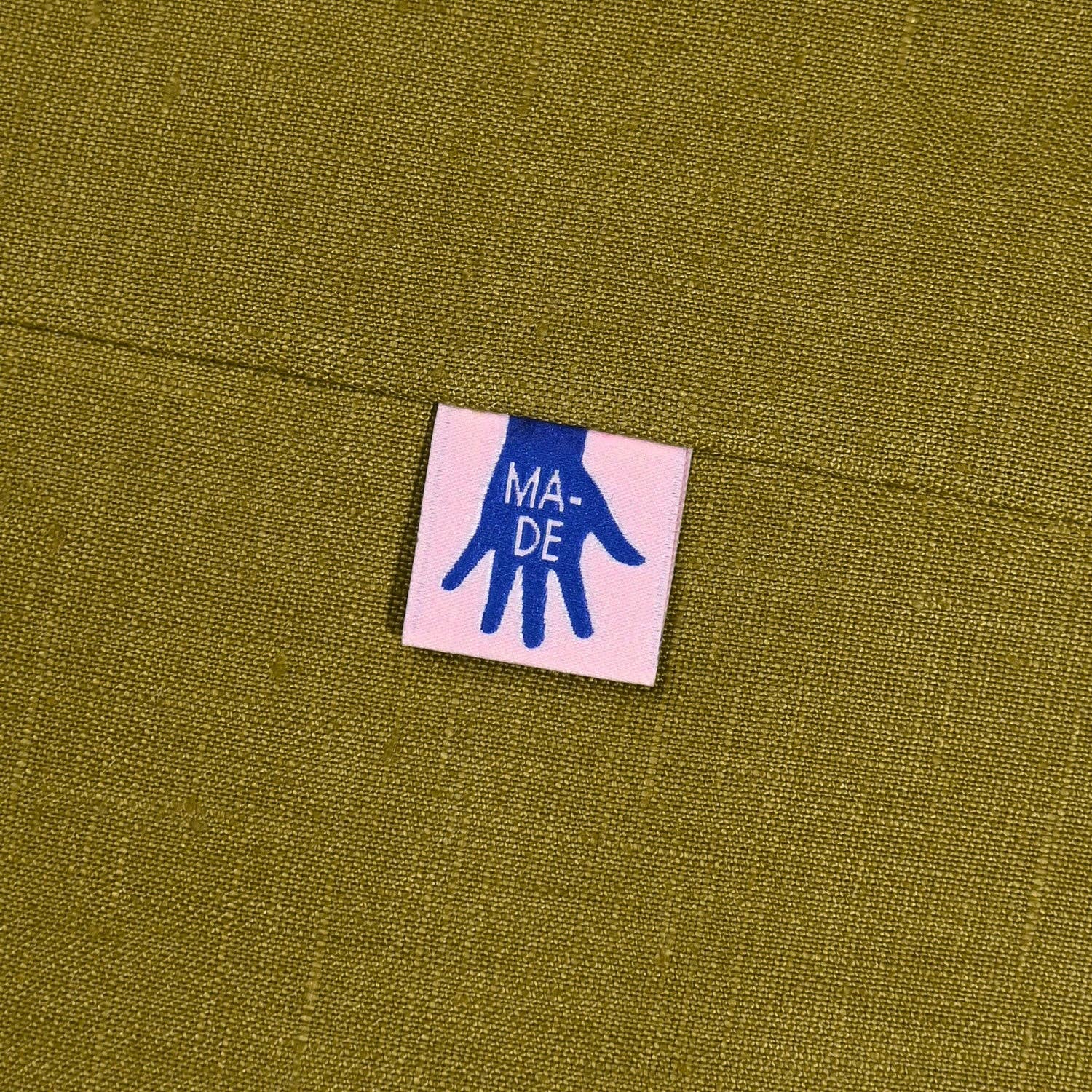 How to attach: This centre fold label is ideally sewn into the garment (either inside or displayed visibly) by inserting into a seam allowance or facing.